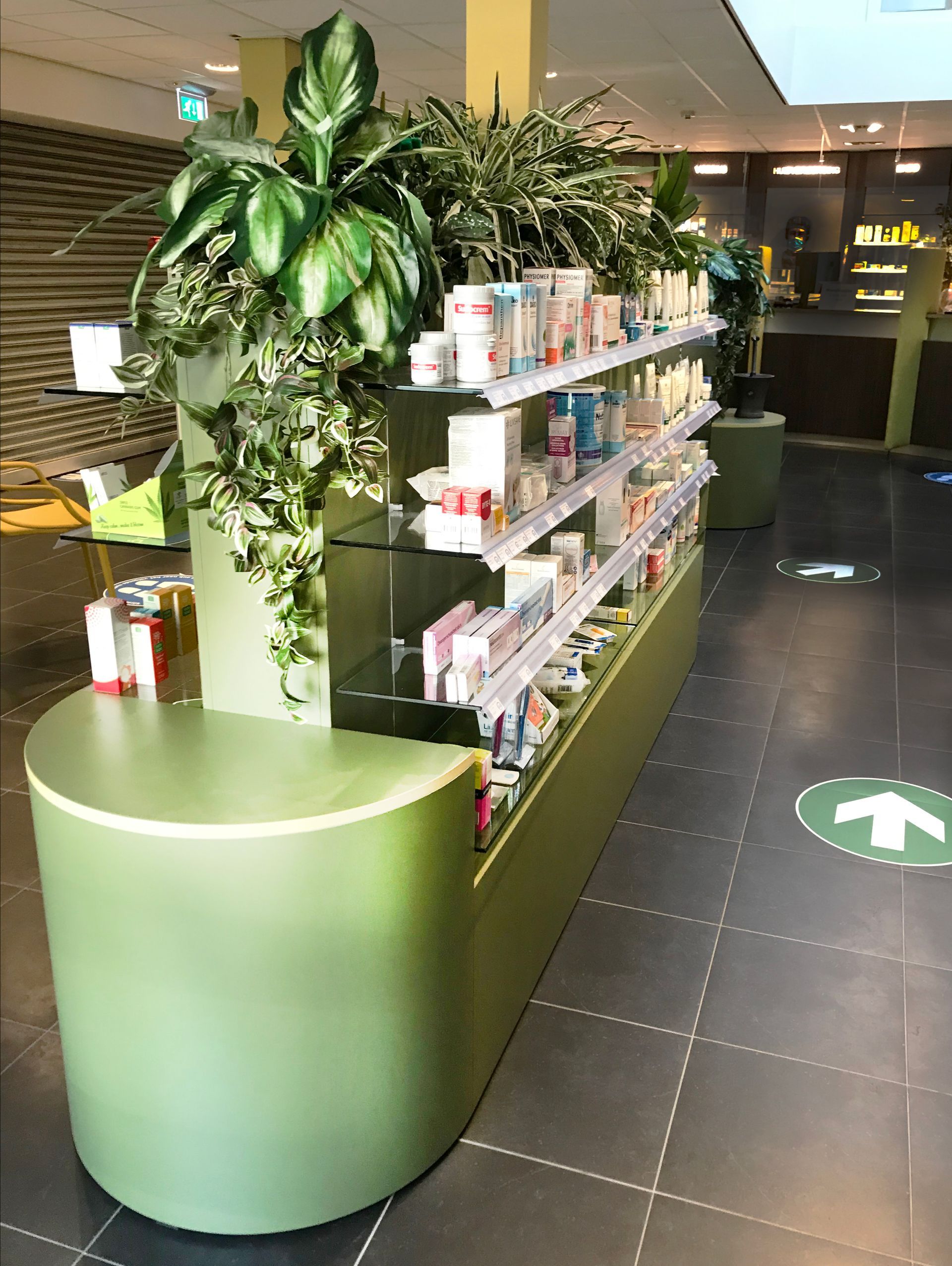 Aan het Groene Hart Ziekenhuis in Gouda is de Dienstapotheek Midden Holland verbonden die onlangs een grondige verbouwing onderging. Van werktafels tot balie werd alles uitgevoerd in een combinatie van massief bamboe en donkergroen HPL. Alle 112 laatjes van de bestaande apothekerskast werden gewrapt in een sfeervolle alchemistische afbeelding.